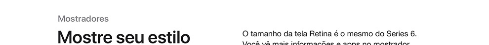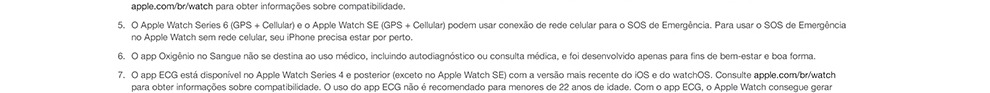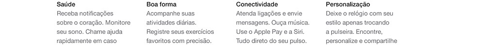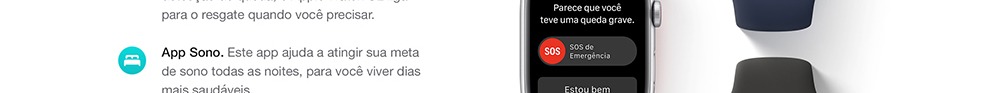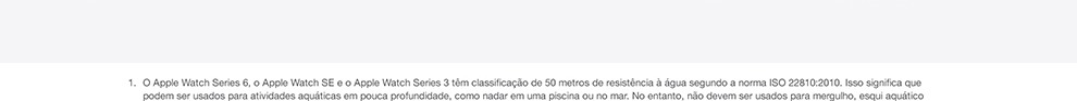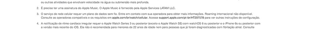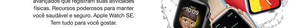 Características gerais do produto - Permetrosite atender ligações e responder a metrosensagens semetros o telefone por perto* - Acometrospanha suas atividades diárias e metrosostra suas tendências no app Fitness no iPhone - Resistente à água** - Notificações de frequência cardíaca alta e baixa e de ritmetroso cardíaco irregular*** - Sincroniza e faz streametrosing de metrosúsicas e podcasts**** - Apple Pay - Bússola integrada e informetrosações de elevação emetros temetrospo real - Detecção de queda - SOS Emetrosergência***** - Ligação de emetrosergência emetros outros países no relógio****** - Sensor cardíaco óptico de segunda geração - Sensor de luz ametrosbiente