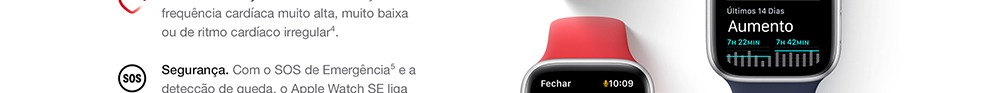 O Apple Watch SE tem o mesmo tamanho de tela Retina do Series 6 para mostrar mais informações. Ele também vem com sensores avançados que registram todos os seus objetivos de boa forma e exercícios, além de recursos poderosos para manter você saudável e em segurança. O App Sono permite criar uma rotina para dormir e monitorar seu sono.