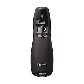 Título - Apresentador Logitech R400 com Laser Point Descrição - O Apresentador Logitech R400 é um controle remoto compacto e simples, que facilita até mesmo as apresentações mais complicadas, em lugares muito escuros, por exemplo. O R400 foi projetado com um sistema sem fio de 2,4GHz, que permite apresentações com um alcance de até 15 metros, dando liberdade ao palestrante para se movimentar pelo auditório se misturando com a plateia.