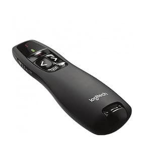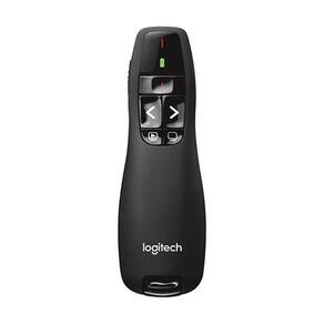 Título - Apresentador Logitech R400 com Laser Point Descrição - O Apresentador Logitech R400 é um controle remoto compacto e simples, que facilita até mesmo as apresentações mais complicadas, em lugares muito escuros, por exemplo. O R400 foi projetado com um sistema sem fio de 2,4GHz, que permite apresentações com um alcance de até 15 metros, dando liberdade ao palestrante para se movimentar pelo auditório se misturando com a plateia.