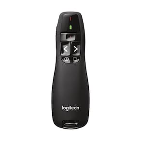 O Apresentador Logitech R400 é um controle remoto compacto e simples, que facilita até mesmo as apresentações mais complicadas, em lugares muito escuros, por exemplo. O R400 foi projetado com um sistema sem fio de 2,4GHz, que permite apresentações com um alcance de até 15 metros, dando liberdade ao palestrante para se movimentar pelo auditório se misturando com a plateia.
