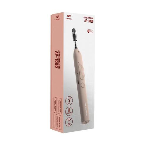 Apresentador sem Fio AP-1000 com Funções PPT e Multimídia, Laser Vermelho e Ponteiro Extensível Champagne C3tech