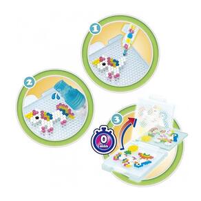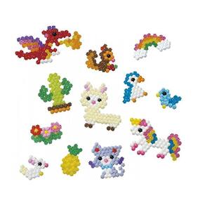O conjunto Star Bead Studio inclui mais de 1000 beads, estrela e sólidas, em 24 cores, estojo em forma de estrela, caneta de contas com seletor de contas, conjunto de bandeja giratória, pulverizador, folhas de modelo e instruções. As Star Beads parecem pequenas estrelas e podem ser usadas para mostrar textura com Aquabeads. Com Star Beads, novas criações Aquabeads são possíveis! Faça criações com uma textura de pelo fofinho e criações que brilham e cintilam. Seguindo o design do modelo, use a caneta para colocar as contas na bandeja giratória para criar seu design. Não se preocupe com erros porque você pode pegar beads perdidas com o seletor de contas deslizando o gatilho na extremidade oposta da caneta. Remova os beads colocadas por engano, pegando-os com cuidado com o seletor. Usando o pulverizador, borrife água para fazê-las grudar magicamente! Continue a criar novos designs enquanto os outros designs secam.