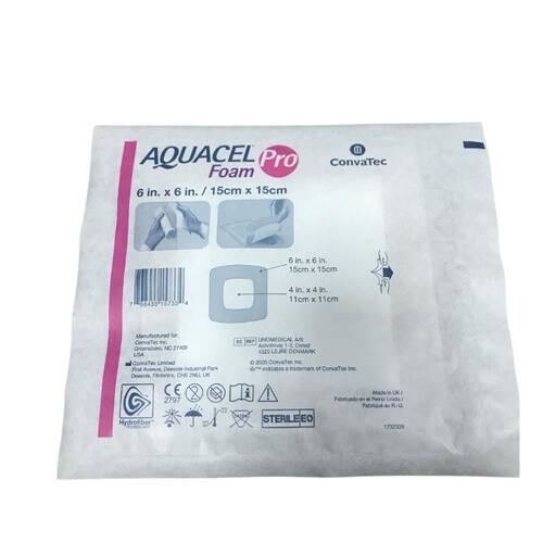 Aquacel Foam Pro 15x15cm - Convatec Contém 1 unidade do Curativo Aquacel Foam Pro é um curativo estéril, de espuma e tecnologia Hydrofiber tm . Para feridas Indicações: O curativo aquacel Foam Pro pode ser utilizado em: - Abrasões - Lacerações - Cortes mínimos Contraindicações: O curativo Aquacel Foam Pro não deve ser em indivíduos que sejam sensíveis ou que tenham apresentado uma reação alérgica ao curativo ou a seus componentes Marca: Não Informado