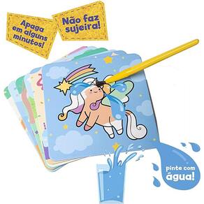 Aquacolor - Colorindo com Agua - Unicornios - 2929 Parece mágica! A criança poderá explorar a fazendinha e buscar pelos animais escondidos Ao entrar em contato com a água, os desenhos são revelados instantaneamente e desaparecem ao secar!