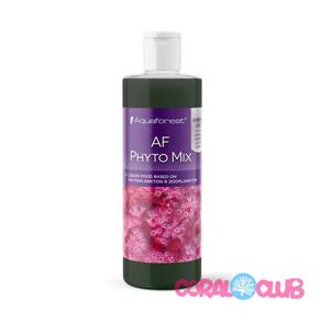 Comida líquida dedicada principalmente a corais moles, gorgónias e corais não-fotossintéticos. Devido ao perfeito equilíbrio entre o conteúdo do fitoplâncton e do zooplâncton, a fórmula fornece aos corais todos os nutrientes necessários, como proteínas, gorduras e carboidratos. Fornece aos corais uma dieta que satisfaz todas as necessidades nutricionais, AF Phyto Mix contém aditivos de origem animal de alta qualidade. A fórmula foi enriquecida com a adição de moluscos ricos em proteínas fácil Absorção. Devido ao excelente equilíbrio de nutrientes, AF Phyto Mix também é consumido avidamente por pequenos peixes, como anthias. Os corais LPS também o absorvem através da água. O uso regular do AF Phyto Mix garante aos corais um crescimento saudável, intensivo e uma excelente coloração.
