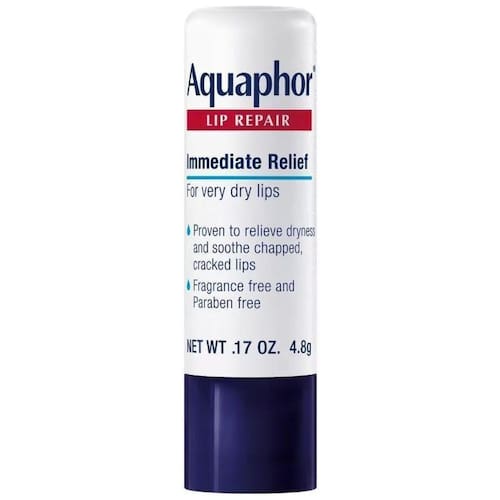 Aquaphor Lip Repair Stick alivia imediatamente o ressecamento e acalma os lábios rachados e rachados.
