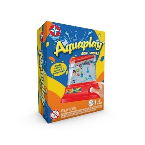 O clássico Aquaplay está de volta em uma das versões mais pedidas pelo consumidores: Argolinhas! O objetivo é pressionar e soltar o botão repetidamente, fazendo com que a água se mova e empurre as argolinhas até que elas se encaixem nos bastões. Quanto mais argolinhas você encaixar, mais pontos você faz.