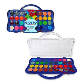Aquarela em Pastilha Giotto Intense Colors com 36 Cores A Aquarela em Pastilha da Giotto tem um design que evita o vazamento da água. As pastilhas tem uma gama de cores ricas, brilhantes e com alta capacidade de cobertura, além da fácil diluição criando efeito de aquarela translúcido. - Marca: Giotto - Watercolors- Contém 36 cores- Tampa Godê- Alça para transporte- Pincéis com cerdas sintéticas- 01 Pincel redondo n.3- 01 Pincel chato n.2- Pastilhas com 30mm de diâmetro - Fácil de usar - Alta qualidade- Cores intensas- Fabricado na Itália - Referência: 353600- Segurança: INMETRO e INNAC- Composição: Goma Arábica, Cargas e Pigmentos - Dimensões (L x A x P): 21,5 x 1,5 x 34,8 cm