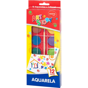 Aquarela escolar em pastilha com Pincel – 12 cores