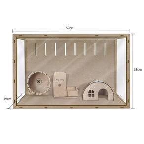 Ofereça ao seu hamster um lar seguro e moderno com este aquário de MDF e PS Poliestireno Com design funcional e elegante, é o espaço perfeito para seu pequeno amigo explorar e se divertir. Descrição detalhada: Este aquário para hamster combina a robustez do MDF com a transparência do PS Poliestireno , criando um ambiente seguro e para o seu pequeno animal de estimação. A estrutura em MDF, cortada a laser, proporciona durabilidade e estabilidade, enquanto a frente em PS Poliestireno transparente permite uma visão clara do interior, facilitando a interação sem perturbar o ambiente do seu pet. As aberturas de ventilação nas laterais garantem a circulação de ar fresco, essencial para a saúde e o bem-estar do seu hamster. A construção cuidadosa com cantos lisos evita ferimentos, garantindo um espaço seguro para o seu animal de estimação. Equipado com uma roda de exercícios, um esconderijo em forma de cabana e um brinquedo de madeira, este aquário é projetado para estimular o comportamento natural do seu hamster, mantendo-o ativo e mentalmente engajado. O design minimalista e a cor clara do MDF conferem uma estética limpa e moderna, que se integra facilmente a qualquer ambiente doméstico. Ficha técnica: Material: Estrutura em MDF com corte a laser, frente em PS Poliestireno Dimensões: 60 cm comprimento x 40 cm largura x 30 cm altura Peso: 2,5 kg Ventilação: Aberturas nas laterais Acessórios: Roda de exercícios, esconderijo tipo cabana, brinquedo de madeira Inclui um saco de serragem de 500g Marca: Não Informado Ean: 7805567943301