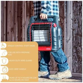 O pacote inclui aquecedor de propano portátil Mr. Heater Big Buddy, conjunto de mangueira de propano de 10 pés e adaptador de recarga de tanque de propano de latão Saída de BTU Utilizando gás propano e com impressionantes 4.000, 9.000 ou 18.000 BTUs de saída de calor, o Aquecedor Portátil Big Buddy é capaz de aquecer até 41 metros quadrados de espaço fechado Uso sem esforço Além de sua impressionante capacidade técnica, o Aquecedor Portátil Big Buddy apresenta uma variedade de elementos que permitem o uso sem esforço e o máximo desempenho. Com seu controle de quatro posições de partida fácil, alça dobrável, conexão de combustível giratória e uma grande superfície de aquecimento geral, esta unidade eleva a fasquia quando se trata de portabilidade e distinção em aquecimento Aquecimento O Aquecedor Portátil Big Buddy é construído para segurança e possui um Sensor de Depleção de Oxigênio ODS e um sistema de detecção de tombamento que leva em conta o baixo oxigênio ou quedas acidentais e desliga automaticamente a unidade, garantindo segurança e facilidade de uso para um muito tempo para vir Marca: Não Informado