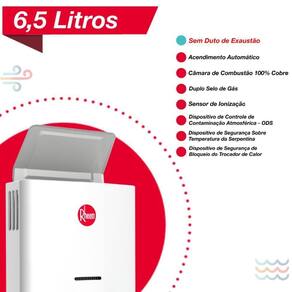 Aqueça a água da sua casa com o aquecedor a gás Rheem RB3AP06NVNA1K de passagem 6,5 L, ideal para uso em ambientes internos. Com tecnologia sem duto de exaustão, permite instalação sem chaminé em locais sem saída externa de gases. O acendimento automático por pilhas garante água quente instantânea, enquanto o sensor de segurança atmosférica (ODS) interrompe o funcionamento em condições inadequadas. A vazão de 6,5 l/min e o comando mecânico oferecem praticidade no dia a dia para banhos e torneiras. Indicado para residências e espaços reduzidos que buscam conforto, segurança e eficiência energética classe A em aquecimento de água a gás natural.