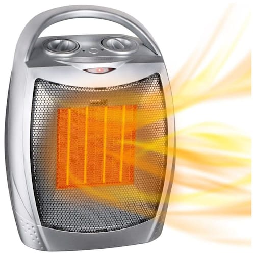 COMPACTO E PODEROSO: Com dimensões de 15,7 cm x 17,8 cm x 25,9 cm e peso de 1,36 kg, este mini aquecedor portátil com alça de transporte integrada ajuda a reduzir as contas de eletricidade, aquecendo apenas o local necessário sem precisar aquecer a casa inteira com outros aquecedores centralizados.