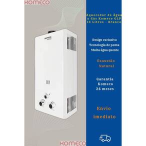 1 Aquecedor de Água A Gás Komeco 15m Slim Glp Branco A Pilha