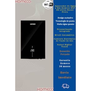 Aquecedor de Água a Gás Komeco GLP 26 Litros Decor Preto