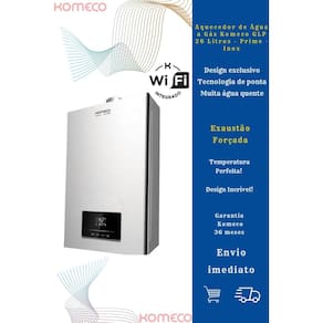 Aquecedor de Água a Gás Komeco GLP 26 Litros - Prime - Inox