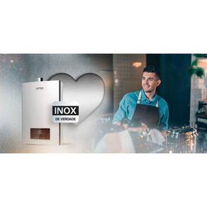 O Aquecedor Komeco 38 Litros Ko 38D Prime - Gn Wi-Fi é fabricado em inox com painel branco e possui as seguintes dimensões sem embalagem: 54x38x19cm. Seu peso líquido é de 18,2kg. Ele possui garantia de fábrica de 3 anos para instalação em autorizada ou 1 ano para uso comercial/industrial.