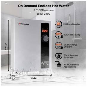 O Aquecedor de Água Elétrico de Passagem Thermomate ET180 é um equipamento de instalação residencial para uso em chuveiro, pia, cozinha e outros pontos de consumo. Com potência de 18kW e tecnologia de auto modulação, o aquecimento ocorre sob demanda, ativando o sistema apenas quando há fluxo de água detectado, sem necessidade de reservatório.