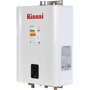 O Aquecedor de Água Gás Natural Rinnai REUE211FEHBN3 possui capacidade de 21 litros, oferece exaustão forçada, display digital e tensão bivolt.