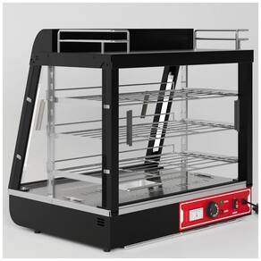 Indicado para fast food como hambúrgueres, batatas fritas e pizzas, o design com prateleiras configuráveis otimiza eficiência em pontos de venda compactos.