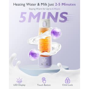 - Aquecimento rápido e mantém aquecido: o aquecedor de mamadeira de viagem Momfree pode aquecer 340 ml de água ou leite em 5 a 10 minutos, com 6 modos de pré-aquecimento cronometrados (30/60/90/120/150/180 minutos) para dar ao seu bebê o leite quente mais fresco. Mantém o leite aquecido automaticamente 6 horas após o aquecimento, tornando-o perfeito para mamadas noturnas ou uso em movimento.