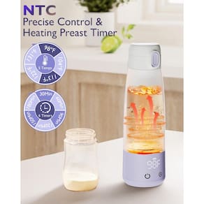 - Controle preciso de temperatura do sensor NTC: com configurações de temperatura NTC ajustáveis de 5 níveis (36.7 °C/40.0 °C/45.0 °C/50.0 °C/55.0 °C), este aquecedor de mamadeira portátil oferece controle preciso para garantir que seu leite esteja sempre na temperatura ideal. Ele usa tecnologia avançada de aquecimento rápido de filme espesso para aquecer 30% mais rápido, com proteção anti-queima a seco para uso seguro.