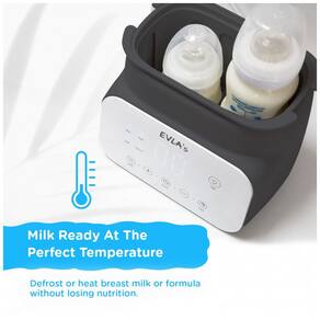 O Aquecedor de Mamadeira EVLAS é a solução conveniente para aquecer o leite do bebê rapidamente e de forma eficiente, poupando tempo e garantindo que seu bebê seja alimentado prontamente. Com um sistema de aquecimento rápido e eficiente, este aquecedor garante que o leite seja aquecido de maneira uniforme, sem superaquecer, proporcionando segurança e saúde ao bebê. Além disso, é projetado para descongelar leite materno de forma segura, preservando os nutrientes essenciais. Com controle preciso de temperatura, mantém a temperatura ideal por até 24 horas, garantindo praticidade para os pais ocupados. Versátil, pode aquecer potes de comida, esterilizar mamadeiras e chupetas, e descongelar leite materno congelado. Um aliado amigável e elegante para pais e bebês.