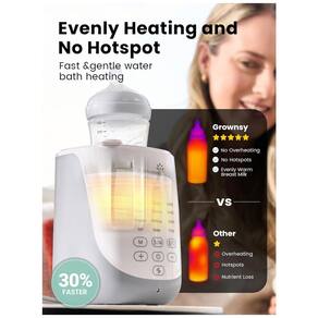 Diga adeus ao antigo aquecedor de mamadeira que nunca atinge a temperatura certa. Apresentamos o aquecedor de mamadeira patenteado GROWNSY, que eleva automaticamente a mamadeira após o aquecimento, garantindo sempre a temperatura ideal e eliminando as suposições. Aquece 120ml de leite em 25 minutos, preservando os nutrientes com tecnologia suave de banho-maria que evita o superaquecimento, favorecendo a digestão e crescimento do seu bebê. Possui função de manter aquecido por 24 horas, perfeito para alimentações noturnas e conforto imediato do bebê. Aquecimento Rápido, Descongelamento Suave, Manter Aquecido por 24 horas, Vaporização, Aquecimento de Alimentos, Elevação Inteligente, Temporizador, Luz Noturna, Cesto Antiescaldo e Função de Memória. Compatível com todas as marcas de mamadeiras e capaz de aquecer todos os tipos de alimentos para bebês. Inicie em apenas três passos e conclua o processo de aquecimento do leite em 35 minutos através de um aquecimento em banho-maria. A função de memória simplifica o início, reduzindo a operação de três etapas para um único botão. O aquecedor de mamadeira GROWNSY foi escolhido por mais de 9 milhões de pais. Com nossa missão de cuidar e nutrir cada etapa do crescimento, continuamos a apoiar mais famílias. Também é um ótimo presente de chá de bebê para novas mães entre parentes, amigos e vizinhos.