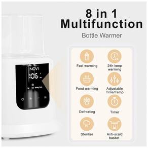 Aquecedor de mamadeiras 8 em 1: Múltiplas funções em um aquecedor de mamadeiras. Aquecimento rápido, aquecimento de alimentos, descongelamento congelado e esterilização a vapor. Com 24 unidades de aquecimento, tela sensível ao toque, queima anti seca, função de memória, cesto anti escaldadura. AQUECIMENTO RÁPIDO: O aquecedor de mamadeiras NCVI pode aquecer rapidamente 120 ml de leite da temperatura ambiente a 40C em 3 minutos. Cabe em garrafas de diferentes materiais e tamanhos. O tempo de aquecimento varia de acordo com os diferentes volumes de leite, temperatura inicial e materiais da garrafa. Temporizador e desligamento automático: O tempo e a temperatura de aquecimento são ajustáveis. Quando o tempo do modo de aquecimento, esterilização rápido terminar, o aquecedor emitirá um bipe 6 vezes e depois desligará automaticamente. O aquecedor de mamadeiras também possui design de desligamento automático para situação de queima a seco, que é mais para mães ocupadas usarem. Manter aquecimento: O modo Alimentos e Descongelamento pode aquecer constantemente, mantendo o leite aquecido dia e noite. O aquecedor de biberões está sempre pronto para a alimentação. É um dos itens essenciais para bebês recém nascidos que facilitam para as mães. Esterilizador a vapor: Temperatura do vapor até 100C, o tempo de esterilização é de 8 a 12 minutos para selecionar. Limpe completamente a mamadeira e o aquecedor do seu bebê. Feito de PP de qualidade alimentar, material de segurança, sem BPA, para o bebê Marca: Não Informado