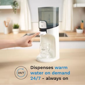 - Faça garrafas instantaneamente 24 horas por dia, 7 dias por semana, sem esperar de 3 a 5 minutos para um aquecedor de garrafas tradicional: basta pressionar a alavanca para dispensar água morna em sua garrafa, adicionar fórmula, misturar e alimentar em segundos