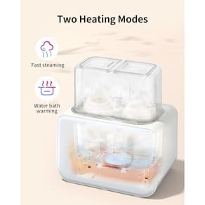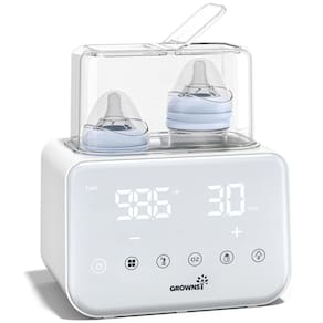 aquecedor de garrafas - ?Aquecimento rápido de vapor e banho de água?O aquecimento rápido do vapor leva apenas de 2 a 4 minutos, aquece rápido o suficiente para acalmar um bebê gritando no meio da noite. Bebês felizes significam mães felizes! O processo de aquecimento gradual e uniforme do banho de água aquece suavemente o leite frio à temperatura do corpo, mantendo sempre a temperatura ideal de alimentação. Diga adeus às perdas nutricionais causadas por superaquecimento ou micro-ondas. - ?Inteligente 10 em 1?Vaporização rápida/aquecimento de banho-maria/descongelamento/24h manter aquecido/esterilizar/aquecimento de alimentos/temporizador ajustável/temperatura ajustável/grande capacidade / cesta antiqueimaduras. Este aquecedor de mamadeira duplo é ideal para famílias gêmeas. Um aquecedor de mamadeira duplo é suficiente para atender a todas as suas necessidades diárias de alimentação e economizar espaço e orçamento. - ?Controle preciso de temperatura?O aquecedor de mamadeira Grownsy tem um sistema de controle de temperatura preciso integrado que é sempre preciso para diferentes funções. O tempo de aquecimento preciso pode ser ajustado com precisão para 30s, e a temperatura precisa pode ser ajustada com precisão para 1 °C. - ?Design de garrafa dupla?Aquecedores de garrafa para todas as garrafas. Grande capacidade pode conter duas garrafas de diferentes tamanhos e materiais, usadas para aquecer o leite materno, fórmula ou água, conveniente de usar e economizar tempo. Também pode descongelar o leite materno, aquecer a comida do bebê e mantê-la aquecida por 24 horas para que as mães possam preparar leite para bebês a qualquer momento. - ?Seguro e conveniente?O aquecedor de mamadeira possui uma função de desligamento automático que desliga o dispositivo quando o leite está pronto, garantindo a temperatura precisa e evitando o superaquecimento. A tela LED e a função de luz noturna tornam a alimentação noturna mais conveniente, a função de temporizador predefinida permite que você programe o horário com antecedência. Você pode ter leite quente pronto quando o bebê precisar beber.