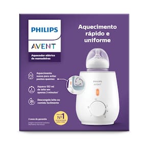 Aquecedor de Mamadeiras Philips Avent - SCF355 Esse produto é especial para facilitar a sua rotina com o seu bebê, e nos dias em que você está sem muito tempo, para aquecer o leite do bebê de forma fácil e prática pode ajudar muito. O aquecedor de mamadeiras Philips Avent esquenta o leite em apenas 3 minutos. Fácil de operar, possui um ajuste prático de descongelamento e também pode ser utilizado para aquecer comida de bebê. Compacto, simples e adaptado para mamadeiras e recipientes Philips Avent. Compre e mantenha o leite do seu bebê sempre quente. - Aquece mamadeiras em 3 minutos?O Aquecedor de Mamadeiras aquece 150ml de leite em apenas 3 minutos*? - Aquece rápido e uniformemente?O Aquecedor de Mamadeiras circula o leite continuamente à medida que o aquece, deixando-o na temperatura ideal e tornando assim o processo rápido e uniforme.? - Configuração suave de descongelamento para mamadeiras?O aquecedor de mamadeiras possui uma configuração de descongelamento conveniente – o processo é mais seguro do que descongelar no microondas e mais prático do que usar água. ? - Use também para aquecer a comida do bebê?Além das mamadeiras, você também pode utilizar o Aquecedor de Mamadeiras para aquecer suavemente e uniformemente a comida do bebê. ? - Fácil de utilizar e com guia de aquecimento?É fácil de utilizar! Basta girar o botão para ligar o aquecedor de mamadeiras e selecionar o modo de aquecimento. O aquecedor de mamadeiras inclui um gráfico de referência de aquecimento útil para que você possa definir facilmente o tempo que levará para aquecer.? - Mantenha o leite ou comida aquecidos?O leite ou comida são aquecidos em ritmo lento, mantendo-os na temperatura correta para quando precisar.? - Compatível com produtos Philips Avent?O Aquecedor de Mamadeiras é totalmente compatível com mamadeiras e copos para armazenamento Philips Avent*. ? Informação técnica:- Marca: Philips Avent- Ref. Modelo: 110v SCF355/07 / 220v SCF355/08- Cor: Branco/Cinza? Dimensões e Peso- Produto (AxLxP) 18 x 16 x 17 cm - Peso Bruto 772gr Conteúdo da Embalagem:- Aquecedor de Mamadeiras- Manual do usuário Garantia do fabricante: 24 meses