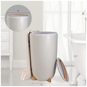 Este aquecedor de toalhas grande possui dimensões de 53 cm de altura por 30 cm de largura e uma capacidade interna de 20 litros. Ele comporta até duas toalhas de banho grandes (101 cm x 177 cm), além de roupões, cobertores, pijamas e muito mais.