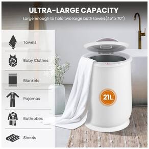 Aquecedor de toalhas compacto e elegante Pesando 3 kg, este aquecedor de toalhas é portátil e fácil de guardar. O elegante aquecedor de toalhas estilo balde adiciona luxo ao seu banho e é perfeito para qualquer estilo de banheiro. É um ótimo presente de Natal, presente de aniversário, presente de Dia dos Namorados, presente de Dia dos Pais para sua família e amigos