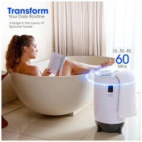 O modelo conta com luzes LED e visor que fornecem uma visão clara das configurações e do estado do aquecimento. Possui uma capacidade de 20 litros, ideal para até duas toalhas de banho grandes, e suas dimensões são 30,48 cm x 30,48 cm x 54,61 cm, tornando-o adequado para espaços compactos. Fabricado em ABS de alta qualidade e chapa galvanizada de PC, o aquecedor tem uma fonte de alimentação de 500 W com 120 V e um cabo de 2,19 metros.