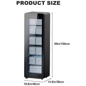 Sua operação é simples e eficiente, com um painel de toque intuitivo e um interruptor de 4 botões, complementado por botões de toque e um elegante display LED. Este modelo versátil vai além do aquecimento de toalhas, sendo ideal para salões de cabeleireiro, spas, estúdios de ioga, hotéis e residências, com capacidade para até 120 toalhas de rosto. É a escolha perfeita para quem busca eficiência e estilo em um único equipamento.