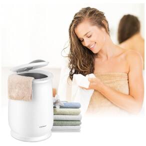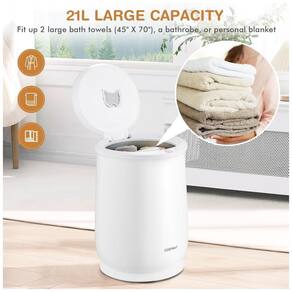 Este aquecedor de toalhas tipo balde é a solução ideal para quem busca eficiência e capacidade em um único aparelho. Com uma impressionante capacidade de 21 litros, ele acomoda facilmente até duas toalhas grandes de 114 x 177 cm, além de cobertores, roupões, pijamas e outras roupas de algodão.