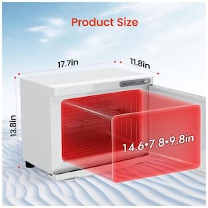 Aquecedor multifuncional: Nosso aquecedor de toalhas é multifuncional. Ele oferece toalhas quentes, funciona como um aquecedor e esterilizador de pedras de massagem e outros utensílios de beleza, sendo ideal para uso em salões, spas, restaurantes e também em casa.