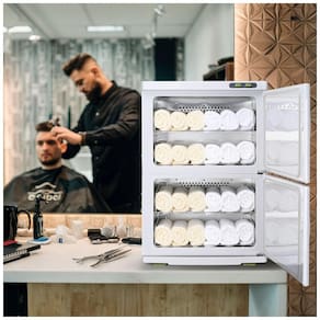 Aqueça suas toalhas com facilidade e eficiência com o Aquecedor de Toalhas CE aprovado. Com capacidade extra grande de 46L, você pode colocar até 100 toalhas. O sistema de controle de temperatura por microcomputador evita superaquecimento, mantendo uma média de 158 graus Celsius. O gabinete duplo e a câmara interna de aço inoxidável garantem uma melhor condução de calor, sem infecção. O aquecedor possui prateleiras superiores e inferiores para armazenar toalhas facilmente e ordenadamente, além de uma bandeja removível embaixo para evitar pingos. Além disso, este aquecedor é adequado não apenas para aquecer toalhas, mas também para aquecer aquecedores de pescoço e pedras de massagem.