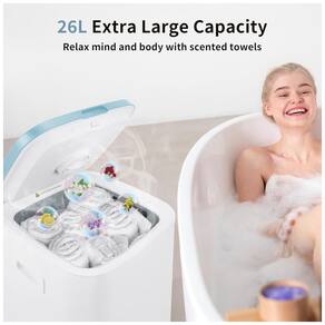 Capacidade Grande de 26L: O aquecedor de toalhas ultra grande pode ser utilizado por toda a família, acomodando até três toalhas de banho grandes (100 x 180 cm), mantas, roupões, pijamas e mais.