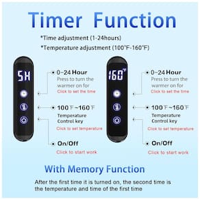 ATUALIZAÇÃO DE FUNÇÃO: Interruptor de controle de temperatura com display visual em °F (Fahrenheit), ajustável de 38°C a 71°C em intervalos de 5,5°C. O tempo de aquecimento pode ser ajustado entre 1 e 24 horas, desligando automaticamente. Mais fácil de usar e econômico.