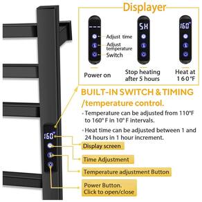 ESPAÇO APLICÁVEL: O aquecedor de toalhas preto fosco elétrico ajuda a reduzir a umidade nos ambientes enquanto mantém as toalhas com cheiro fresco. Ideal para secar rapidamente toalhas, roupões e outros itens, mantendo-os secos e confortáveis após o banho ou chuveiro.