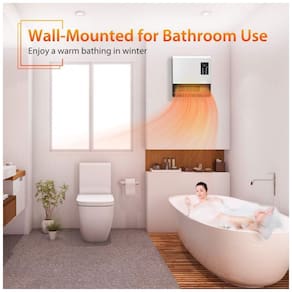 Aquecedor de Parede e Aquecedor Portátil 2 em 1; O aquecedor de parede vem com ferramentas de montagem que não ocupam espaço no chão e também com uma base portátil, caso precise movê-lo de um andar para outro; Ambos são fáceis de instalar; Este aquecedor elétrico de parede é altamente recomendado para o banheiro, se você gosta de tomar um banho quente no inverno, e também é ideal para porões mais úmidos e frios.