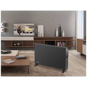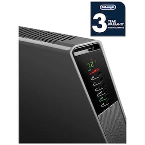 AQUECIMENTO DE QUARTO COMPLETO Consegue 1500 watts 5120 BTUs de potência de aquecimento para o conforto de toda a sala VISÃO SLEEK Seja no chão ou na parede, SlimStyle by DeLonghi é a maneira mais bonita de se aquecer AQUECIMENTO INSTANTÂNEO O sistema de ventilador duplo enche a sala de calor rapidamente MONTAGEM CONVENIENTE DA PAREDE Segura e fácil de montar em qualquer parede com o kit incluído CONFORTO PERSONALIZADO personalize suas necessidades de aquecimento com o termostato ajustável e várias configurações de calor Cobertura de aquecimento 300 pés quadrados Este aquecedor de painel elegante e moderno da DeLonghi é perfeito para qualquer aplicação e decoração. Com aquecimento instantâneo e seu sistema exclusivo de ventilador duplo, o aquecedor DeLonghi Slim Style aquece rapidamente os quartos mais frios. Não tem espaço suficiente Com seu design fino e conveniente opção de montagem na parede, você pode virtualmente colocar esse aquecedor em qualquer lugar. É ideal para uso como aquecimento suplementar ou local no quarto, sala, escritório ou em qualquer lugar da casa. Você pode personalizar suas necessidades de aquecimento com o termostato ajustável e três configurações de aquecimento. Você pode ficar tranquilo sabendo que esse aquecedor possui um corte térmico de segurança, para não superaquecer, um interruptor interno de tombamento caso a unidade fique instável e o indicador de energia , cuidado acenda