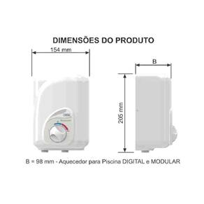Acompanha o produto: - 1 Aquecedor para Piscina ModularParafusos e buchas para instalação 2 Engates Flexíveis1 Kit Instala Fácil contendo 2 Niples ?BSP1 Gabarito de Furação Manual de Instruções Garantia: - 1 ano junto ao fabricante