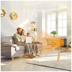 Desfrute de aquecimento rápido e eficiente com o Aquecedor de Espaço JIBUFI de 1500W. Seu design portátil permite colocá-lo no chão ao seu lado, na mesa do escritório ou carregá-lo para onde precisar de calor. Este aquecedor compacto é ideal para ambientes. Certificado pela ETL, possui recursos de proteção contra tombamento e superaquecimento, juntamente com um plugue de segurança aprimorado. Com o modo ECO, você pode definir a temperatura desejada para um aquecimento preciso e econômico. Seu amplo ângulo de oscilação de 70° garante um aquecimento abrangente em espaços como quartos, garagens, porões, escritórios e mesas. Com diferentes modos de operação, incluindo Alto, Médio, Baixo, ECO e Somente Ventilador, atende a diversas necessidades de aquecimento. O controle remoto facilita o ajuste entre calor e eficiência, além de operar silenciosamente para um sono tranquilo ou um trabalho produtivo. Altamente portátil, é perfeito para uso em casa, grandes ambientes, salas internas, salas de estar, quartos, escritórios e até barracas.