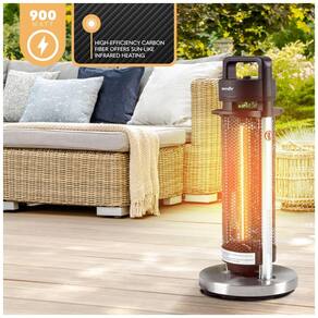 TECNOLOGIA AVANÇADA DE AQUECIMENTO Este aquecedor gazebo de 900 watts possui elementos de aquecimento de fibra de carbono de alta eficiência e oferece aquecimento infravermelho instantâneo semelhante ao sol para que você possa sentir o calor em apenas alguns segundos. Tem configurações de baixa e alta potência PROTEÇÃO DE TOMBAMENTO Os aquecedores de varanda elétricos ao ar livre estão equipados com interruptor de segurança de tombamento de 360 graus para garantir a segurança de sua família, para que você não precise se preocupar com a queda acidental do vento forte, seu filho ou seu animal de estimação EFICIENTE ENERGÉTICO Os aquecedores externos SereneLife para pátio à prova dágua aquece instantaneamente e transfere diretamente o calor para o corpo, tornando o altamente eficiente em termos energéticos e também inodoro e não precisa de gás ou propano, tornando o ecológico PROJETO IMPERMEÁVEL Este aquecedor aprovado IP44 apresenta design à prova dágua e poeira com estrutura de liga de alumínio, tampa de base de aço inoxidável, tornando o a solução de aquecimento perfeita para gazebo, pátio, café , restaurante ao ar livre, garagem, varanda e churrasco 13 m. FT. ÁREA DE AQUECIMENTO Os aquecedores elétricos de pátio com controle remoto oferecem uma faixa de calor quente de até 15 metros quadrados, tornando os ideais para uso interno e externo. vem com uma grade de malha frontal e controle remoto para operação sem problemas