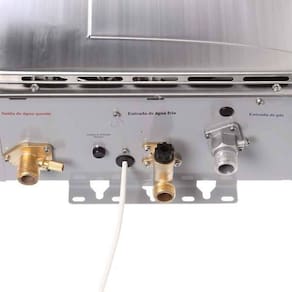 Aquecedor ko43di inox glp komeco 43l mod. ConvencionalTipo de gás: glpAlimentação: elétricaPressão de funcionamento mínima: 2 mcaMarca: komecoProduto:Aquecedor a gásTipo: digitalTensão elétrica: bivoltVazão: 43 l/minQuantidade de pontos de uso que o aquecedor atende: 5 duchas de 8l/min ou 4 duchas de 8l/min + 2 torneiras de 4l/minPressão de funcionamento máxima: 60 mcaCaracterística adicional: vazão mínima de água para funcionamento: 4 l/minExaustão: forçadaAmbiente indicado: apartamentoSensor de chama: simClasse de eficiência energética: aConsumo de energia elétrica: 59,96 kwh/mêsAprovado pelo inmetro: simPotência do aquecedor de água a gás 67,4 kcal/hConsumo glp 4,89 kg/hDiâmetro da chaminé: 100 mmConexão/entrada0.75 Diâmetro da rosca em polegadas0.75 Cor: inoxTonalidade: prataModelo: ko 43 diPeso e medidasPeso do produto na embalagem: 22,7 kgAltura: 60,2 cmLargura: 39,5 cmProfundidade: 19,5 cm