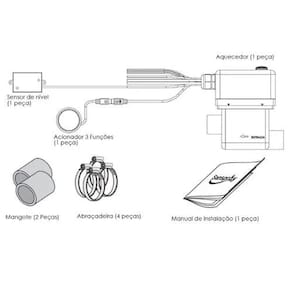Itens Inclusos: - 01 Aquecedor para hidromassagem - 01 Painel de controle digital - 01 Sensor de nível - 04 Abraçadeiras - 02 Mangotes - 01 Manual de instruções Ean: 85423190
